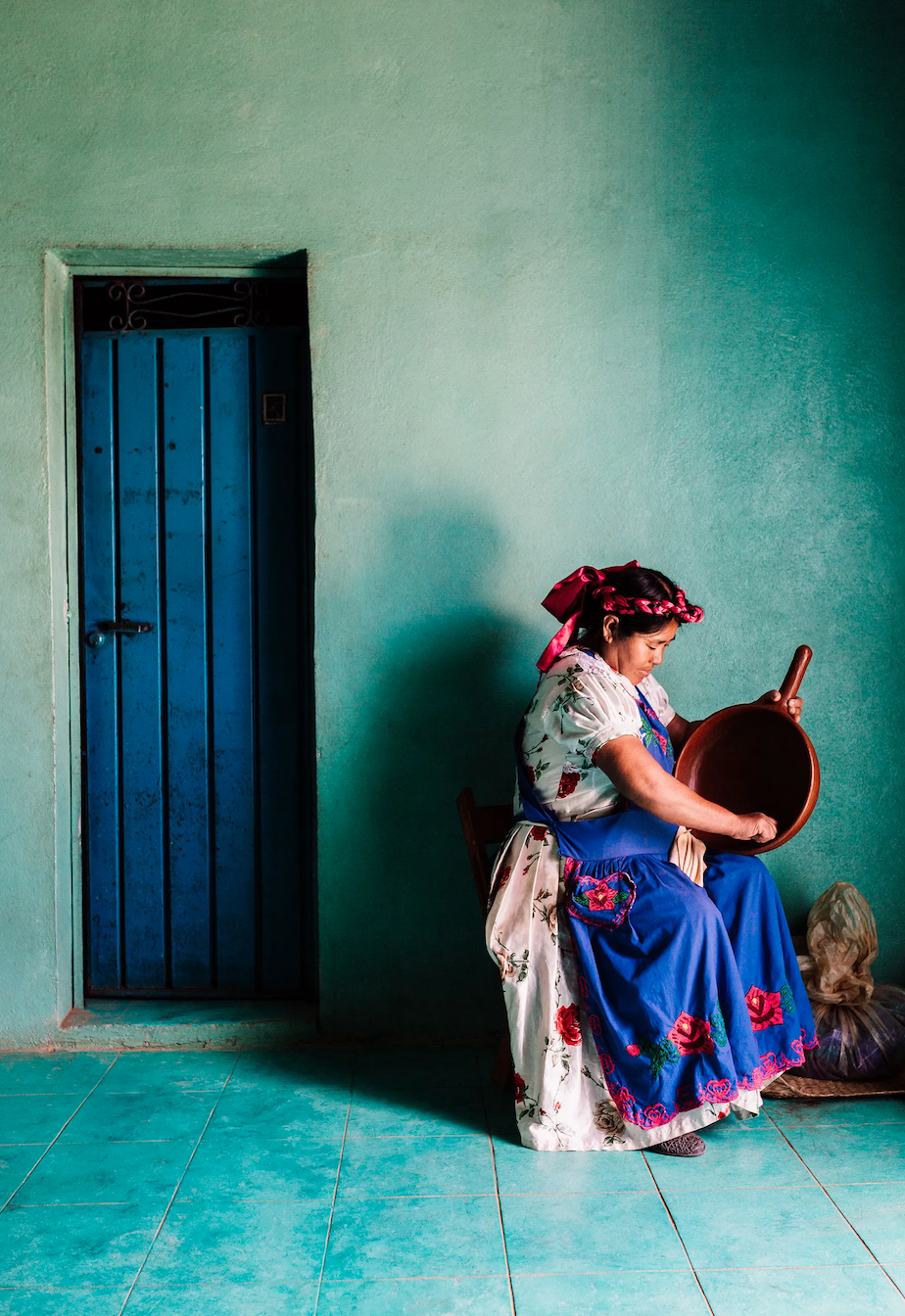 This full-day experience includes a guided tour of the village market, a hands-on demonstration of traditional chocolate making on a metate, an intimate look at the ancient techniques of natural dyeing and textile weaving, and a delicious home-cooked lunch.
